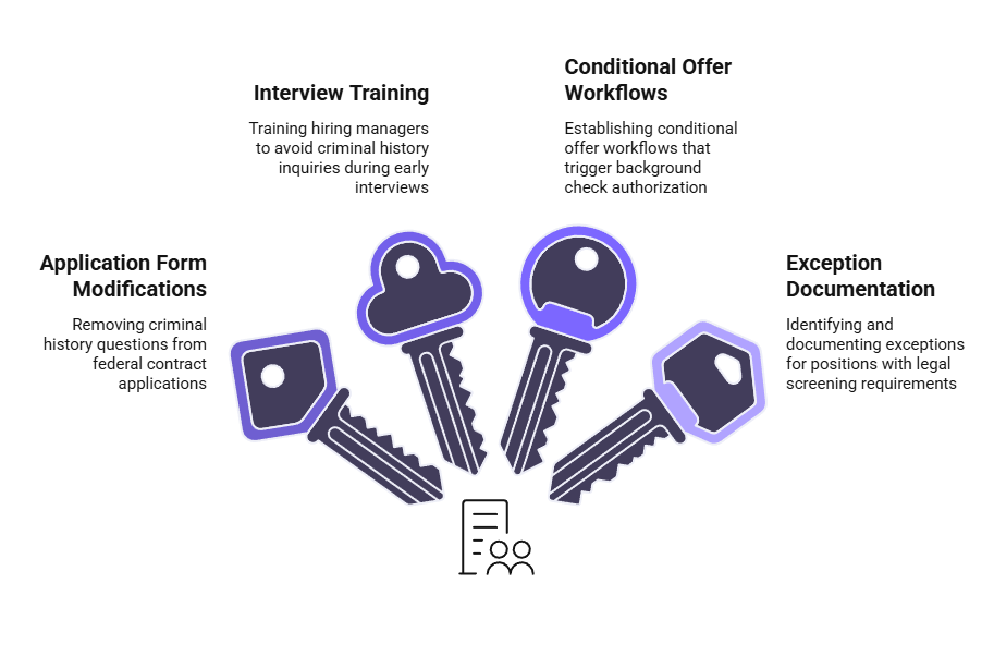 Compliance requires restructuring application forms to remove questions about criminal history, training hiring managers to avoid premature inquiries during interviews, and implementing conditional offer workflows that trigger background check authorizations only after candidate selection. Human resources teams must ensure that online application systems, third-party recruiting platforms, and decentralized hiring processes all reflect these timing restrictions.