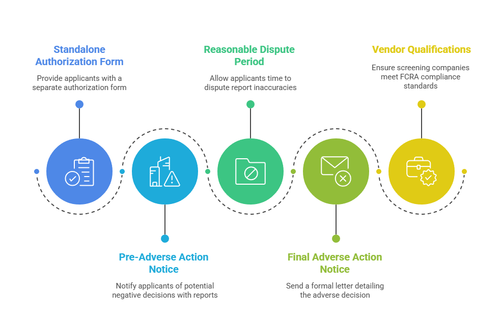 - Final adverse action notice: Employers must send formal adverse action letters including screening company contact information and dispute rights