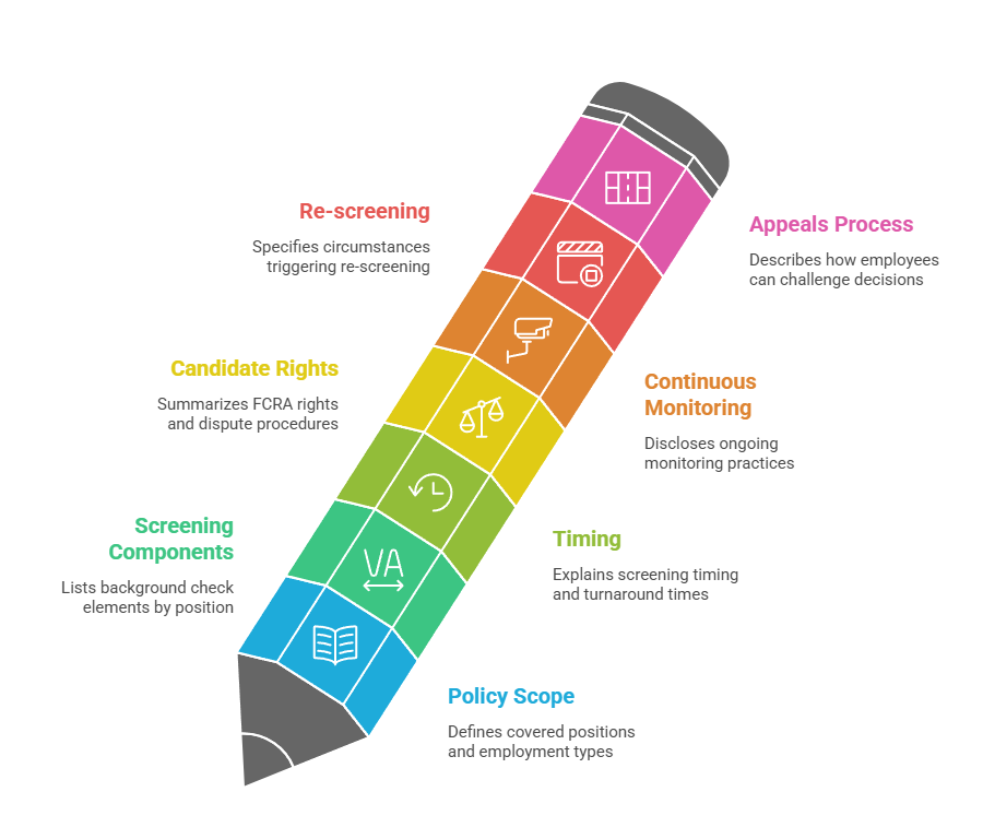 Policies should undergo legal review to ensure compliance with federal FCRA requirements and relevant state laws. Annual policy reviews keep pace with changing legal landscapes and evolving business needs.