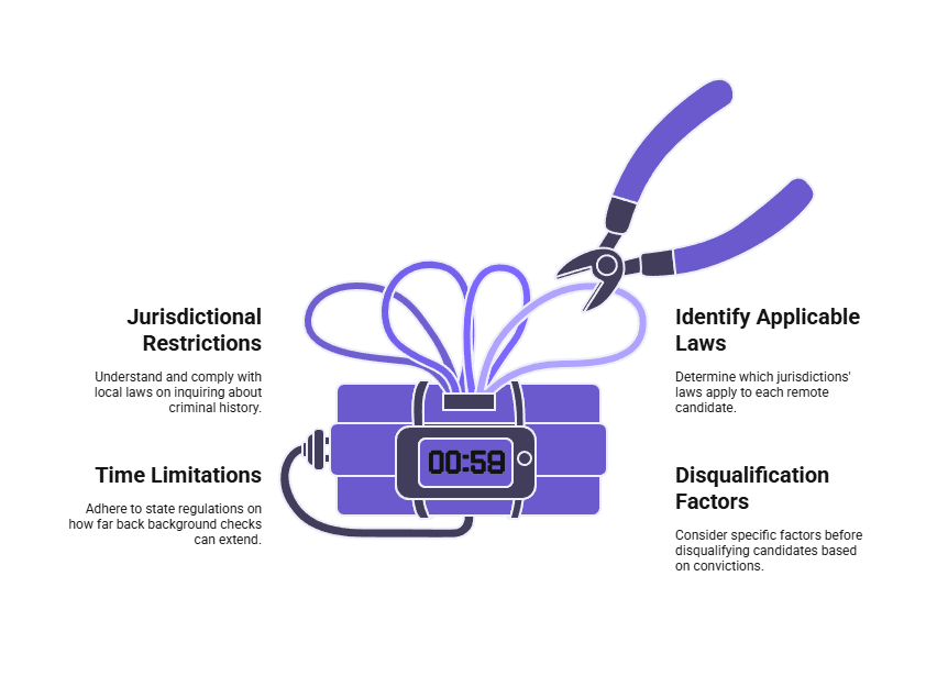 Organizations must identify which jurisdictions' laws govern each remote worker and ensure compliance with all applicable requirements. Federal regulations provide baseline standards, but state-specific restrictions on criminal history inquiries, conviction consideration requirements, lookback period limitations, and procedural mandates vary substantially. Municipal ordinances may impose additional restrictions in certain locations.