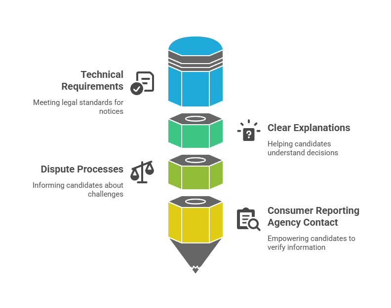 When screening results lead to adverse decisions, how organizations communicate those outcomes significantly impacts candidate experience and legal compliance: