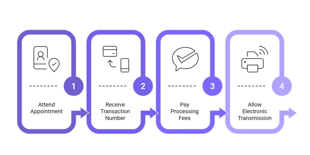 - Pay applicable processing fees at the time of service