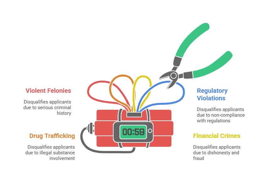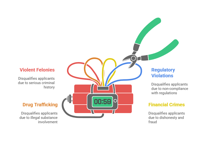 - Disqualifying offenses generally include violent crimes, drug trafficking, and financial crimes, though marijuana-related convictions are often excluded