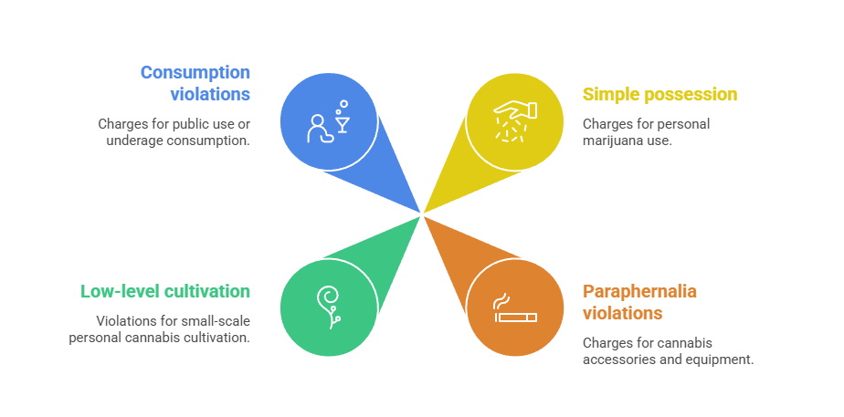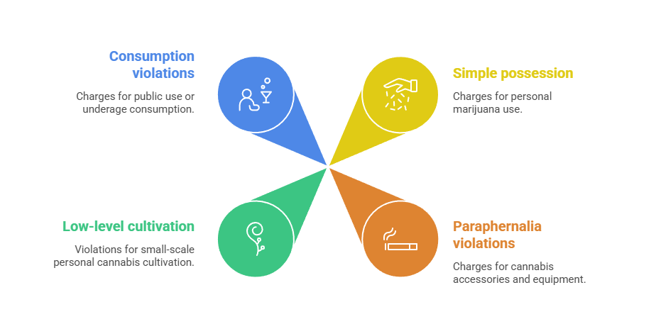 - Paraphernalia violations: Cannabis accessory and equipment charges