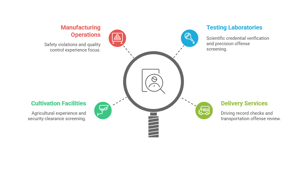 Retail dispensaries typically focus on customer-facing positions that require strong communication skills and trustworthiness. Background checks for these positions emphasize theft-related offenses and customer safety concerns. Security personnel face enhanced screening requirements due to their access to cannabis products and facilities. Management positions often require the most comprehensive screening due to their operational authority and regulatory responsibilities.