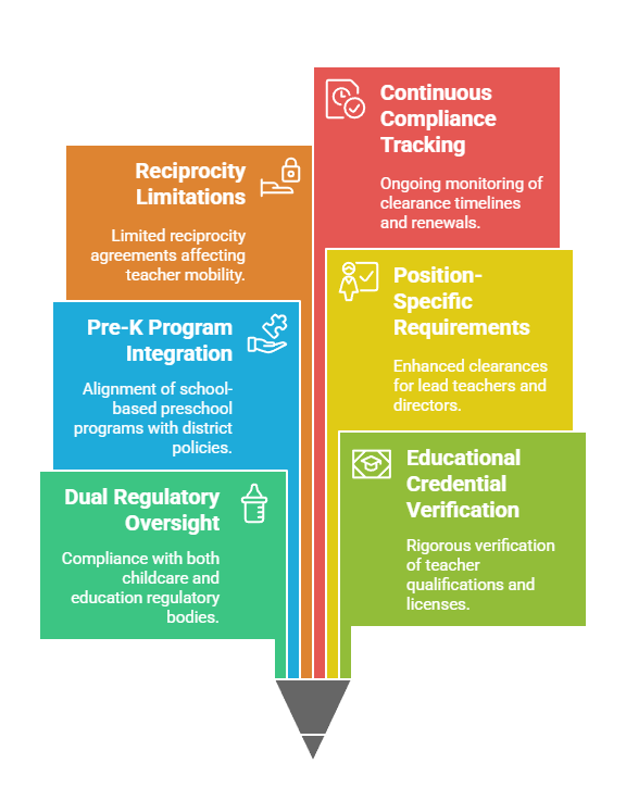 - Educational Credential Verification: Enhanced screening protocols for preschool teachers including verification of degrees and professional teaching licenses