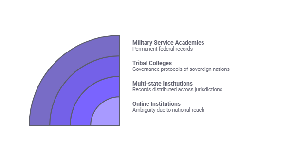 Federal institutions like military academies and tribal colleges may follow different closure and record retention protocols: