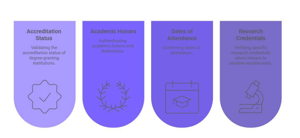 • Academic credential verification presents unique challenges requiring validation of international degrees, accreditation status of issuing institutions, and authentication of professional licensure claims.