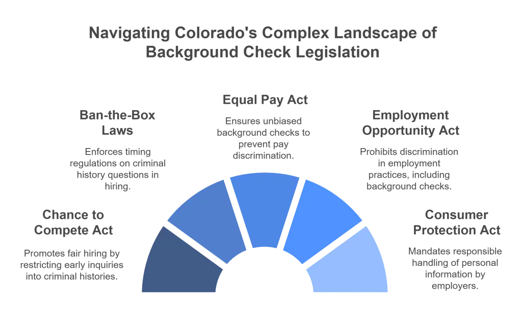Colorado enforces several laws impacting background checks, including the Colorado Chance to Compete Act and Ban-the-Box laws, which restrict the timing and scope of criminal history inquiries. Understanding these laws, alongside the FCRA and local data privacy regulations, is essential to ensure compliance and avoid legal repercussions.