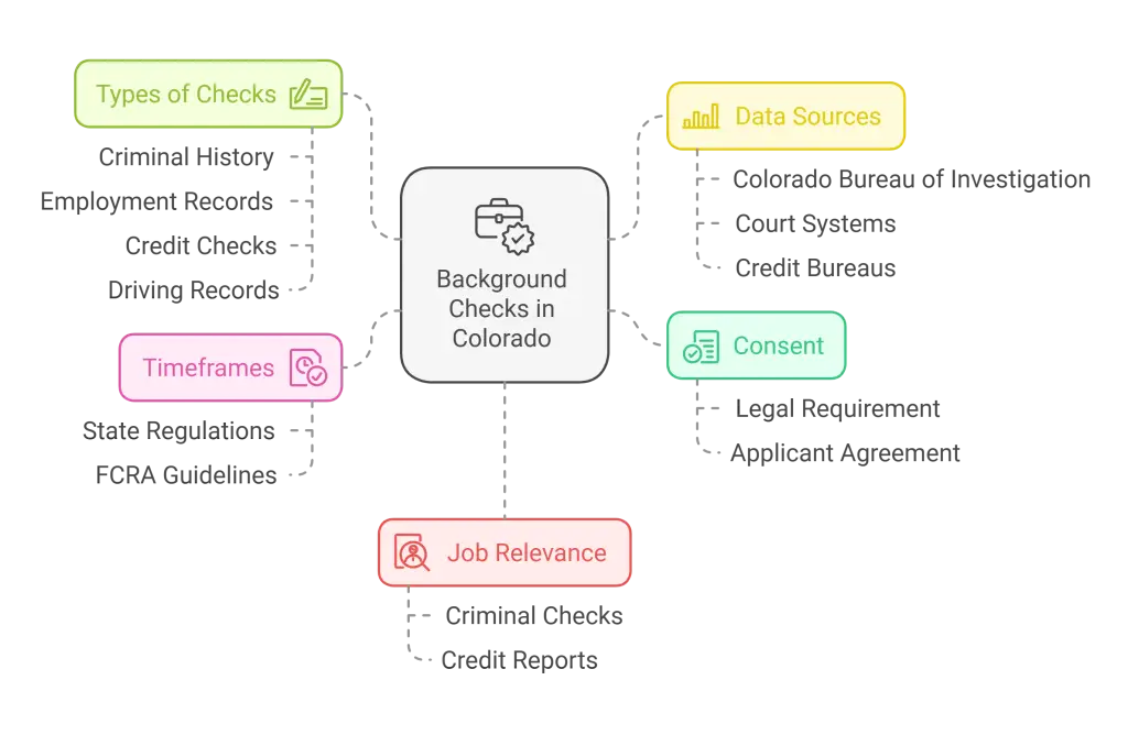 2. Conducting background checks in Colorado requires obtaining applicant consent and varies based on job requirements, shifting from criminal history to credit checks while considering privacy regulations.