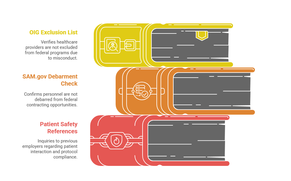 - OIG Exclusion List Verification: The Office of Inspector General's List of Excluded Individuals and Entities (LEIE) identifies healthcare providers barred from federal healthcare programs. This occurs due to fraud, patient abuse, or professional misconduct.