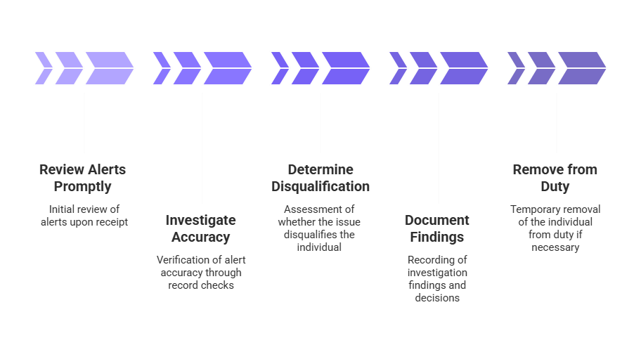 Continuous monitoring generates alerts when new records appear. Not all alerts indicate disqualifying issues. An alert may reflect a case of mistaken identity, a non-disqualifying offense, or a matter that requires individualized assessment.