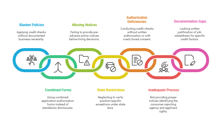 - Authorization Deficiencies: Conducting credit checks without written authorization or with overly broad consent language.
