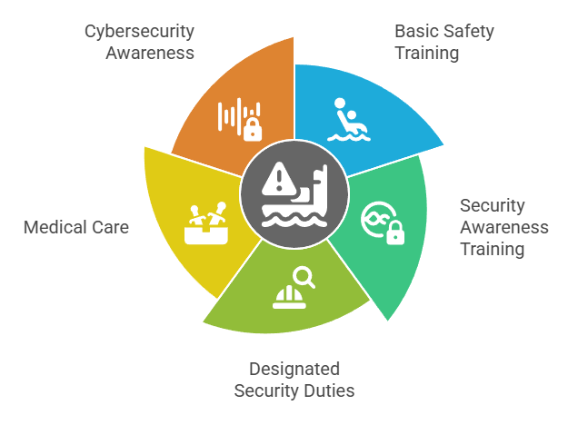 - Security Awareness Training: Ship and port facility security protocols under ISPS Code requirements