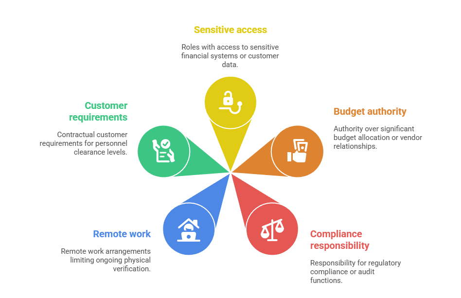Not all positions warrant identical verification depth. Strategic frameworks calibrate verification thoroughness to role-specific fraud risk and organizational impact. The approach optimizes resource allocation while maintaining appropriate protection levels.
