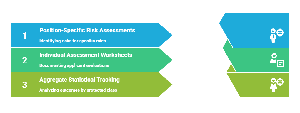 - Position-specific risk assessments: Completed before screening begins, these documents identify essential functions and genuine criminal history categories that would create unacceptable risk for specific duties, establishing prospective business necessity rather than post-hoc justification.