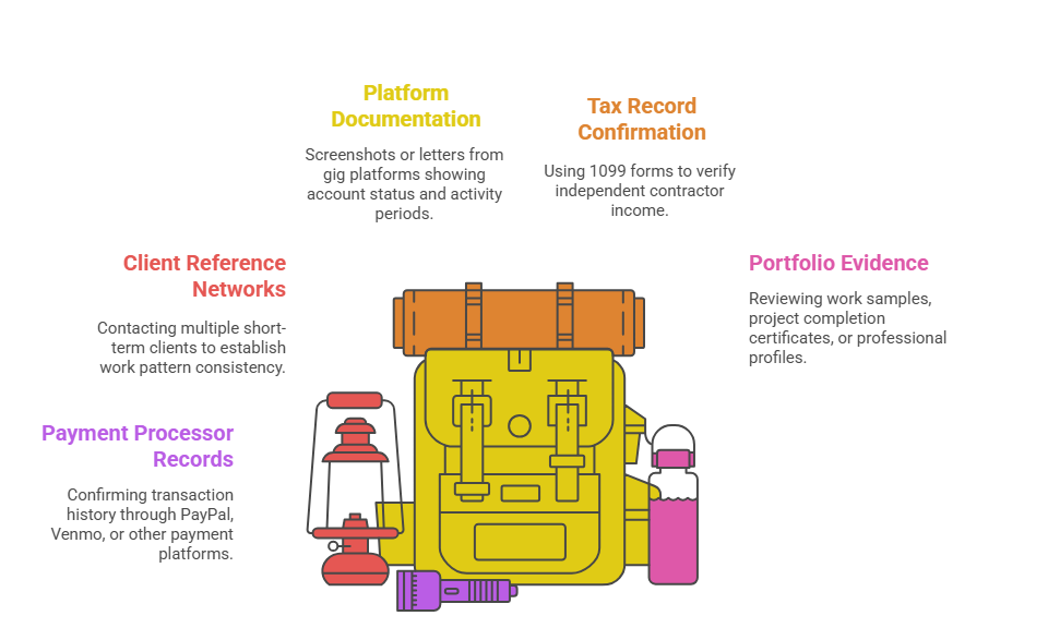 • Platform documentation: Accepting screenshots or letters from gig platforms showing account status and activity periods