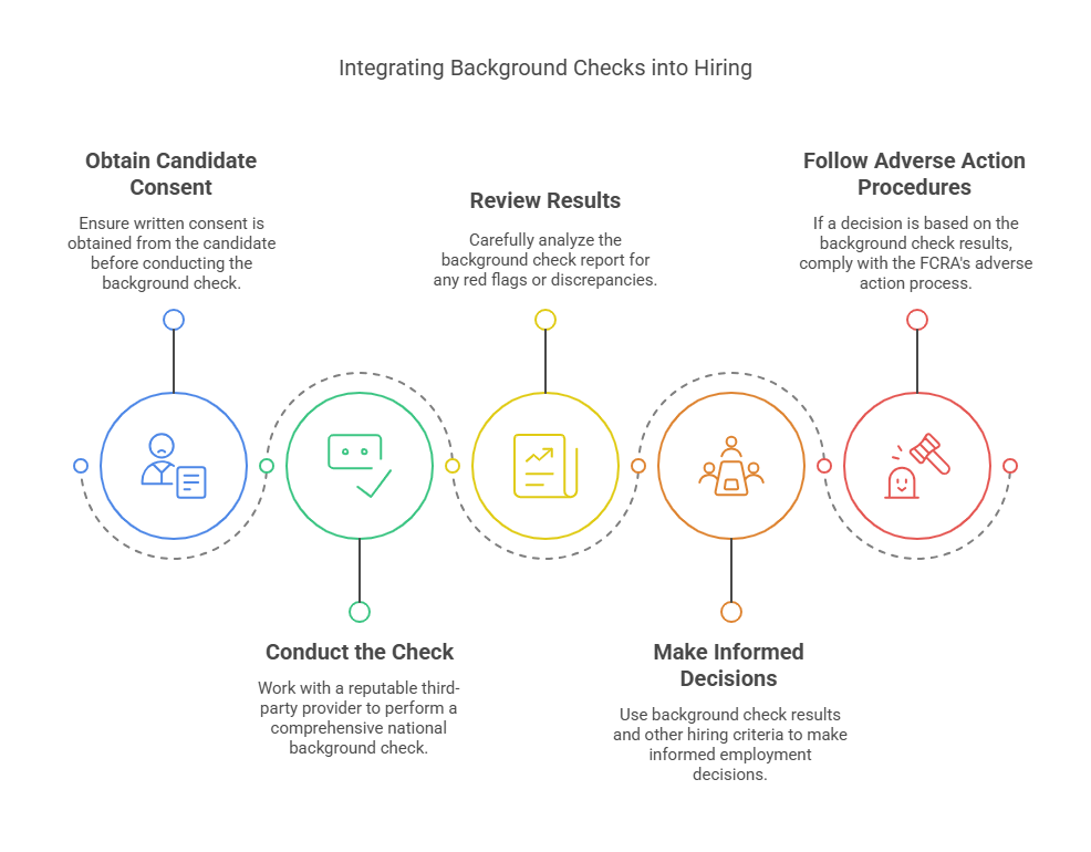 To effectively integrate national background checks into the hiring process, HR managers should: