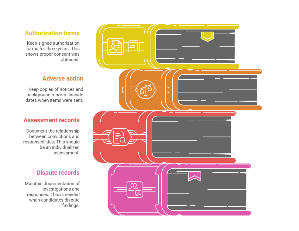 - Dispute resolution records: Maintain documentation of investigations and responses when candidates dispute findings