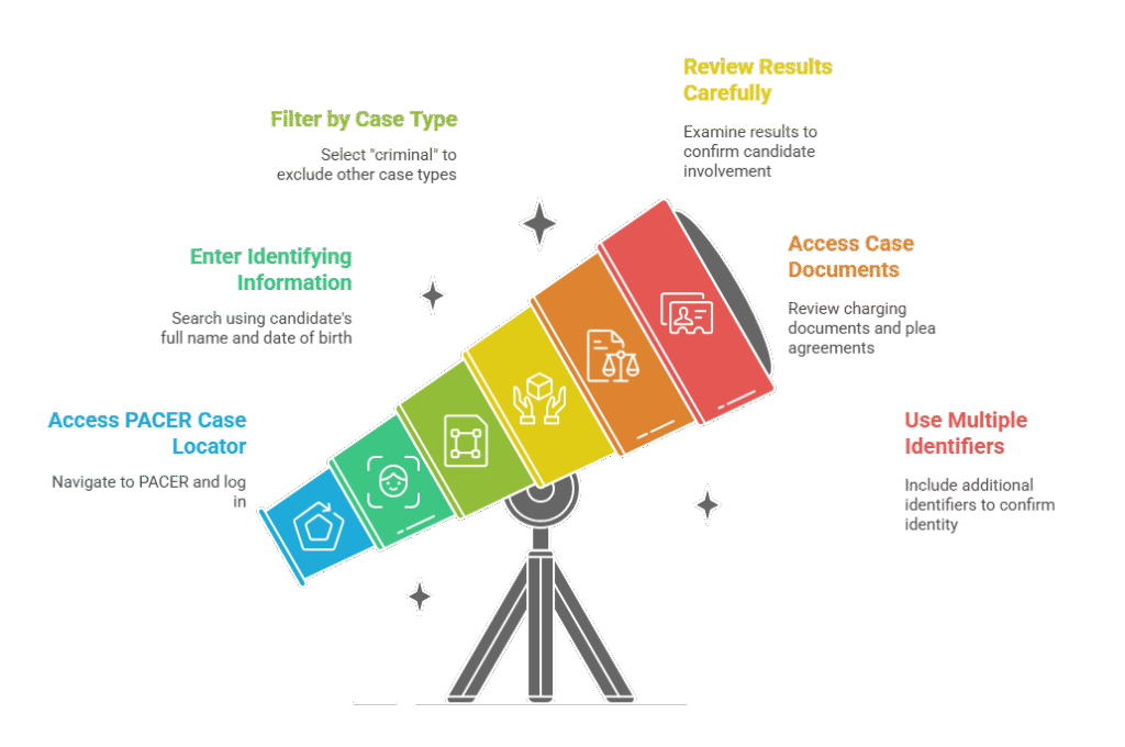 To conduct an effective PACER criminal background search, employers should follow these steps: