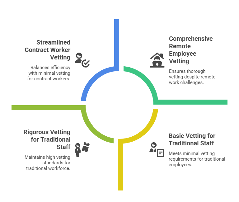 Organizations must determine appropriate screening scope for technology and operational roles. Role-based screening matrices should reflect actual risk exposure rather than defaulting to maximum scrutiny for all positions. Contract workers and gig economy participants present additional complications. Screening processes should scale appropriately to engagement duration and risk levels.