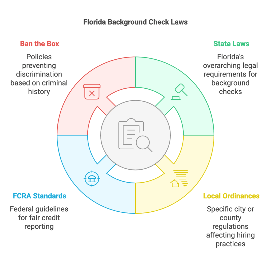 • Background checks in Florida are complex due to differing state and local laws, requiring a precise understanding for employers.