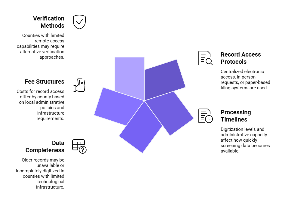 Employers developing scalable screening programs must account for these jurisdictional variations through flexible workflows that adapt to county-specific access methods, processing timelines, and data availability constraints.