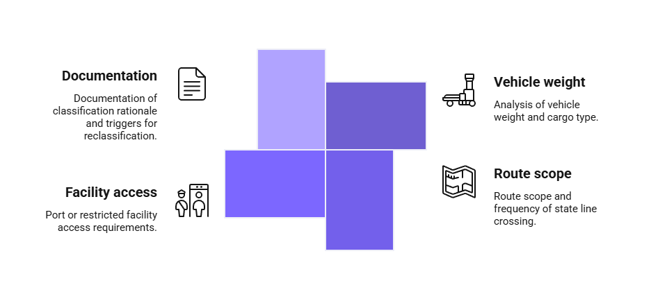 Proper classification requires analyzing vehicle weight, cargo type, route scope, and frequency of interstate travel. Seasonal or occasional interstate trips may bring otherwise intrastate drivers under federal jurisdiction for specific periods. Employers must document classification decisions and update them when operational assignments change.