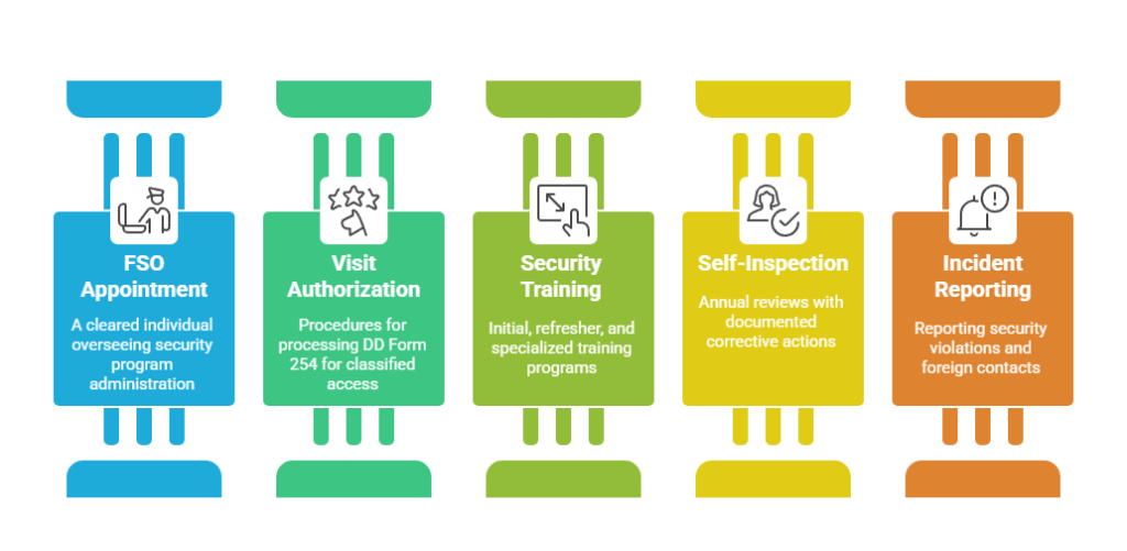 - Technology Infrastructure: Modern FSO programs require robust tools including case management systems, visit authorization databases, training administration platforms, and secure communication systems