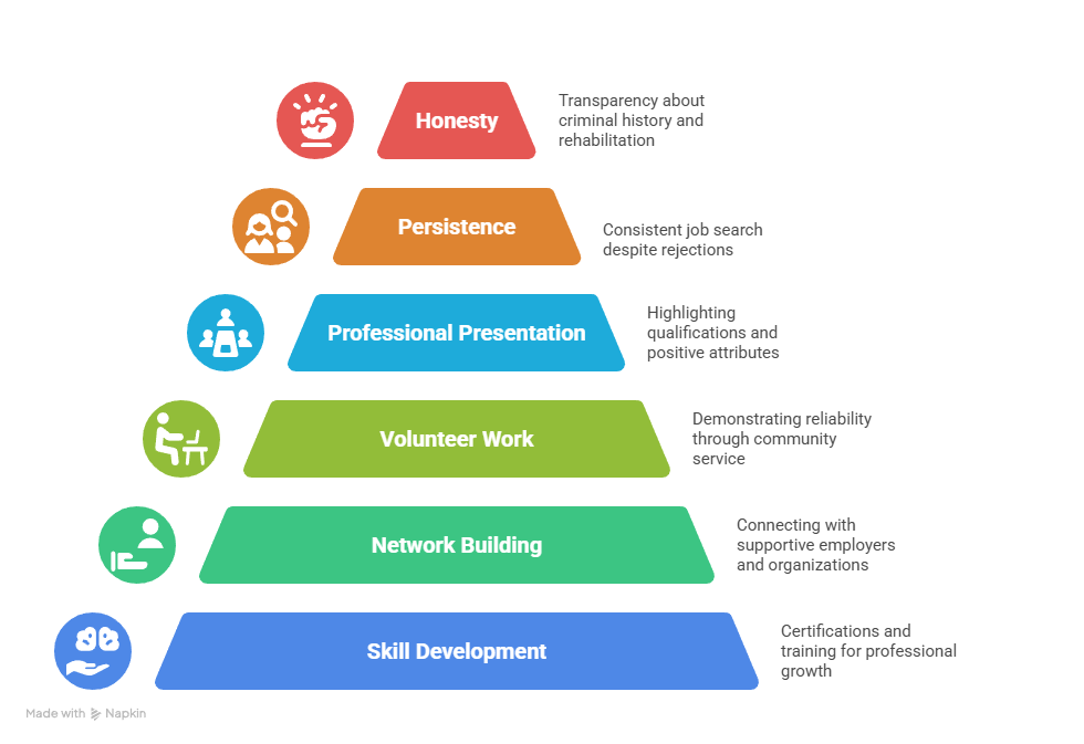 Successful job searching with a criminal background requires strategic approaches and understanding of employer perspectives. Focusing on skills, experience, and positive changes since any criminal history can help overcome initial concerns. Building professional networks, obtaining relevant certifications, and demonstrating reliability through volunteer work strengthens applications significantly.