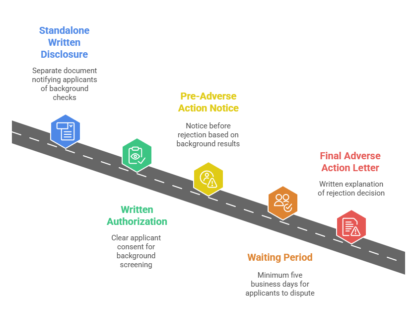 - Waiting Period: Minimum five business days allowing applicants to dispute inaccuracies before final employment decisions