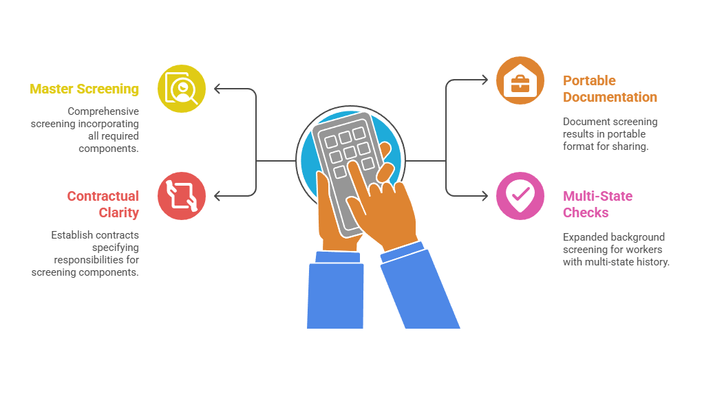 - Contractual Clarity: Establish contracts with client facilities that clearly specify which party bears responsibility for each screening component and how frequently re-screening is required.