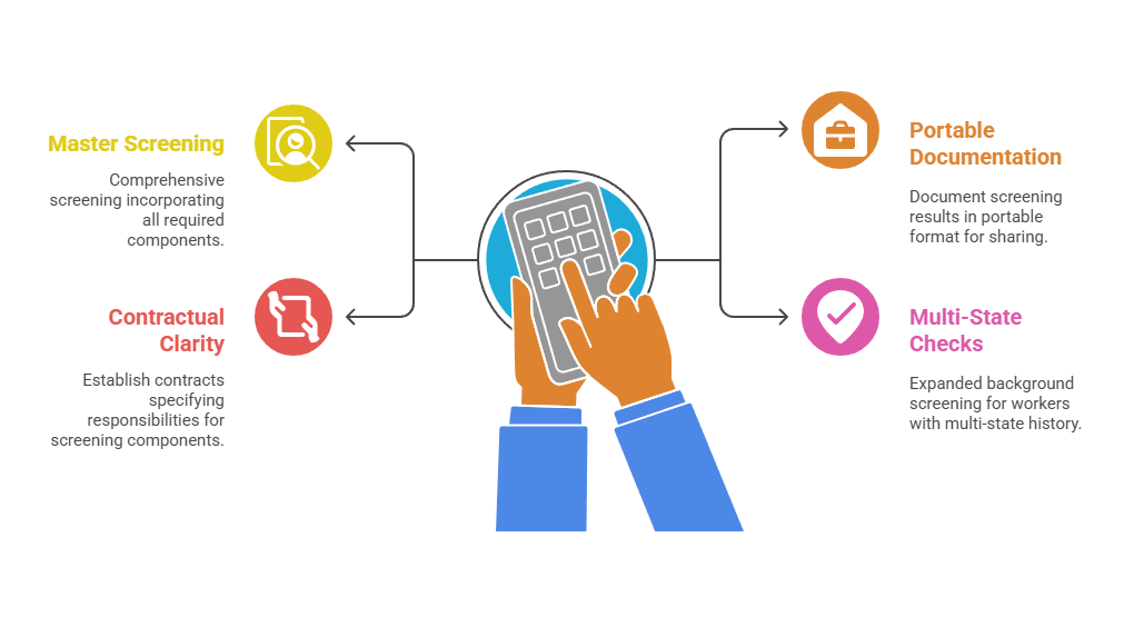 Healthcare staffing agencies supplying temporary or contract workers to Georgia facilities face compounded background screening challenges. Agencies must conduct screening that meets the requirements of the most stringent client facility while maintaining compliant processes across potentially dozens of client relationships with varying standards.