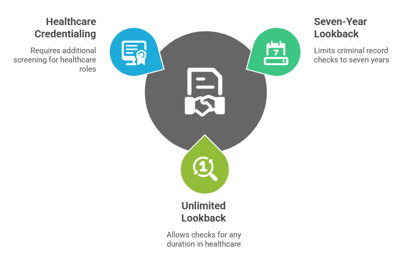 Therefore, healthcare background check requirements by state must account for these timing restrictions even when criminal history is highly relevant to the role.