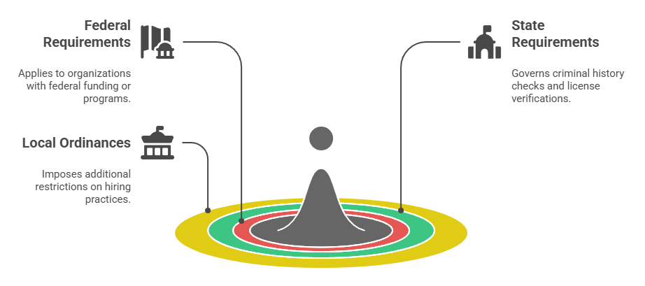 - Ban-the-box laws and fair chance hiring ordinances in certain states restrict the timing and use of criminal history information in healthcare hiring decisions.