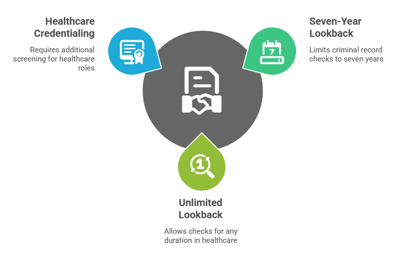 Therefore, healthcare background check requirements by state must account for these timing restrictions even when criminal history is highly relevant to the role.