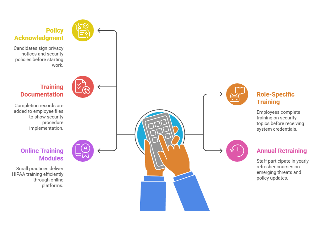 - Online training modules: Small practices efficiently deliver HIPAA training through platforms with completion tracking and minimal time away from patient care