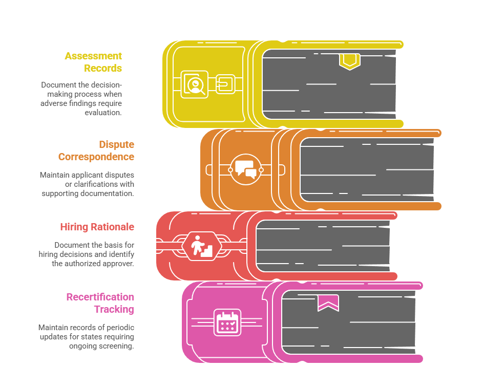 - Recertification tracking: For states requiring ongoing screening, maintain clear records of all periodic updates.