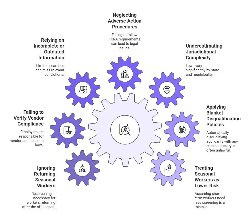 • Common mistakes include treating seasonal workers as lower-risk, applying blanket disqualification policies, and underestimating jurisdiction-specific compliance requirements.