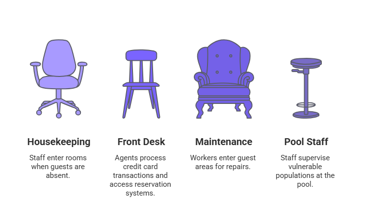OperationsMaintenance, groundskeeping, pool attendantsProperty access, often unsupervised