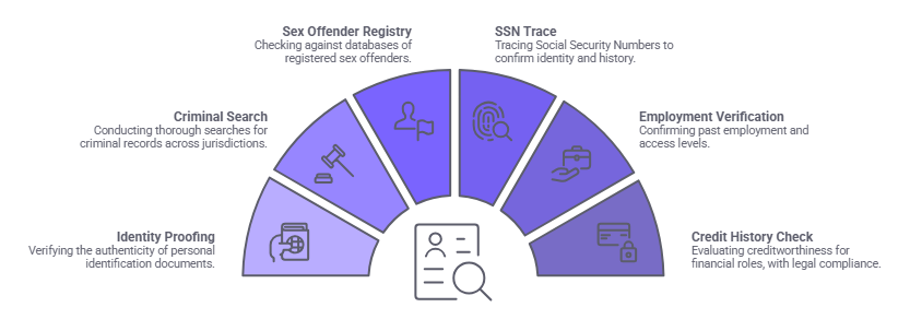 Hotels should use a role-tiered framework based on access level. Limited-access roles require identity verification, a national criminal check, and a sex offender registry search. Guest-facing roles add multi-jurisdiction county criminal records and employment verification. High-access roles including housekeeping and accounting require the full Tier 3 stack, including federal criminal records and, where applicable and state-law-permitted, credit history.