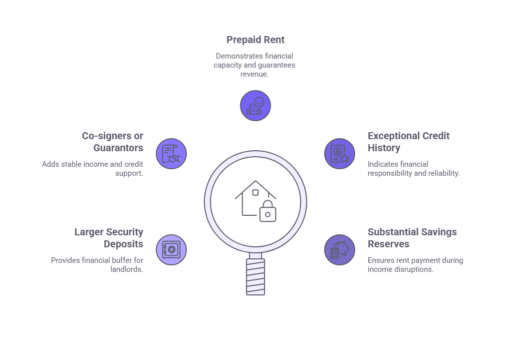 - Substantial savings reserves: shows capacity to maintain rent during income interruptions