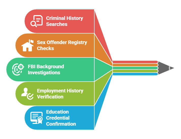 - Sex offender registry checks: Nationwide database queries identifying registered offenders prohibited from school employment