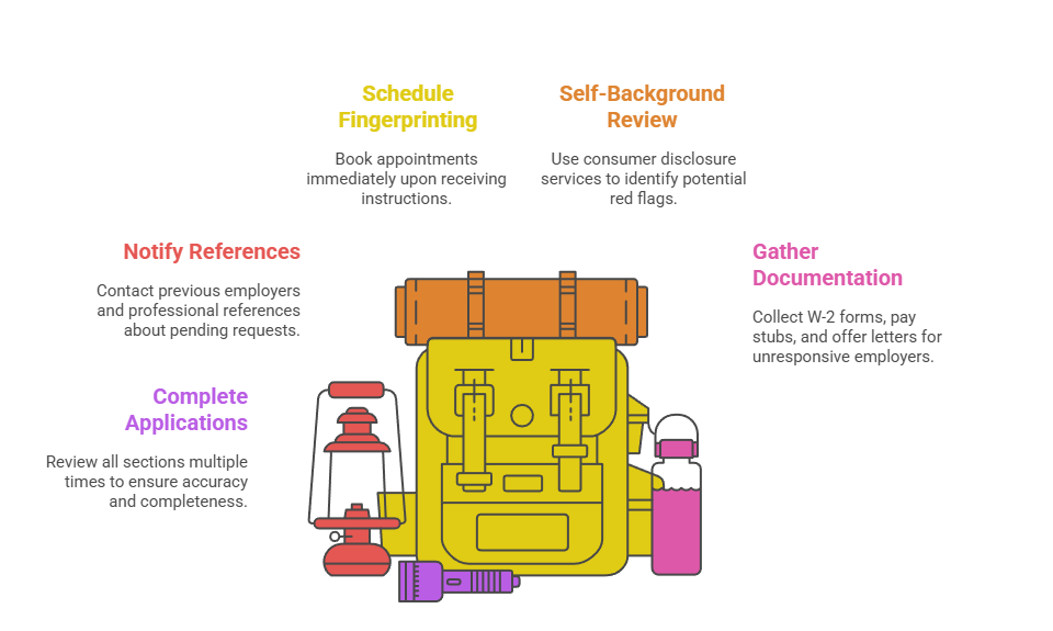 - Schedule fingerprinting immediately: Book appointments upon receiving background check instructions rather than waiting for additional steps