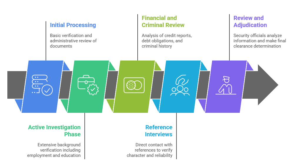 - Active Investigation Phase (Months 2-5): Extensive background verification including employment history, residence confirmation, education records, and reference interviews