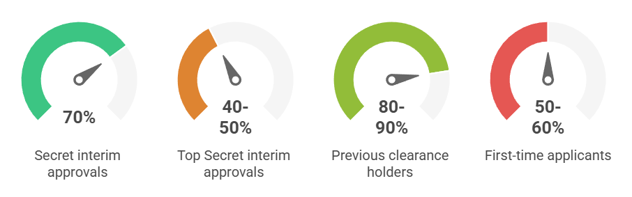 - Top Secret interim approvals: Limited to 40-50% of applications due to enhanced security requirements