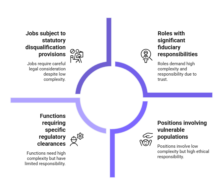 Yes, but exemptions vary across state, county, and city frameworks and must be verified for each applicable law. Exemptions generally exist for positions involving vulnerable populations, significant fiduciary responsibilities, or roles subject to statutory disqualification provisions. Employers cannot broadly apply exemptions without confirming that the specific position meets the criteria established in each applicable legal framework.
