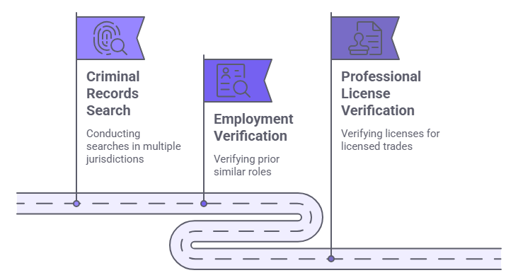 | IT and technology contractors | Data breach, fraud, synthetic identity in remote onboarding | Criminal history search with attention to fraud and computer crime categories, subject to individualized assessment before any adverse decision; identity verification; credential verification |
