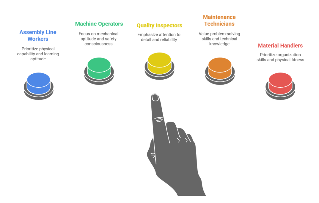 - Machine operators: Focus on mechanical aptitude and safety consciousness rather than criminal screening