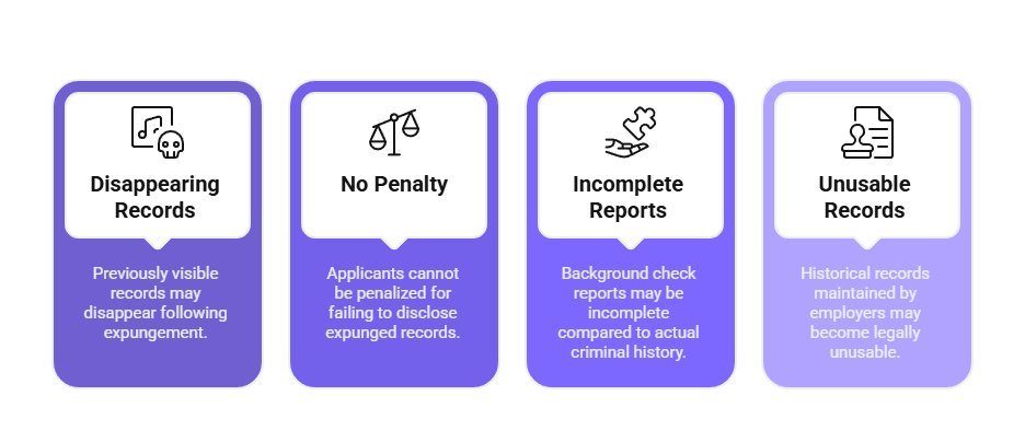 Automatic expungement provisions apply to certain offense categories and timeframes without requiring individuals to petition courts. Expanded eligibility criteria have increased the volume of records subject to expungement, meaning records previously visible to employers may no longer appear in screening results.